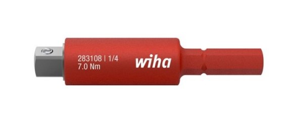 Ten izolowany adapter jest poddawany kontroli jednostkowej zgodnie z międzynarodową normą IEC 60900 i umożliwia w połączeniu z izolowanymi kluczami nasadowymi Wiha bezpieczną pracę w obszarze elementów znajdujących się pod napięciem do 1000 V AC.