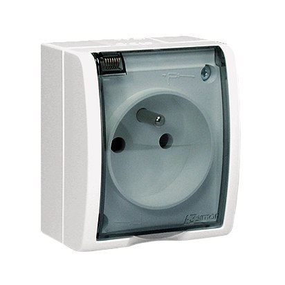 NAZWA PRODUKTU/RODZAJ: gniazdo wtyczkowe pojedyncze z uziemieniem - w wersji IP54 - klapka w kolorze transparentnym