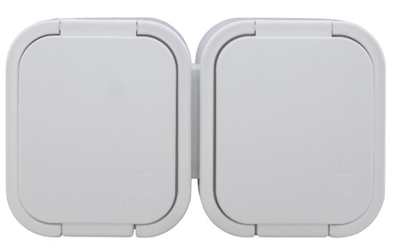 Gniazdo wtyczkowe podwójne 2P+Z bryzgoodporne z klapką w kolorze wyrobu IP54