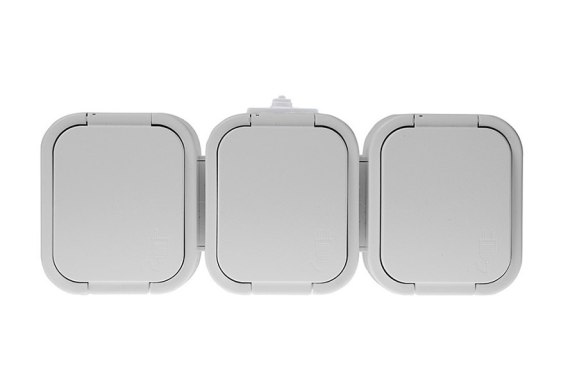 Gniazdo wtyczkowe potrójne 3x2P+Z bryzgoodporne z klapką w kolorze wyrobu, IP54
