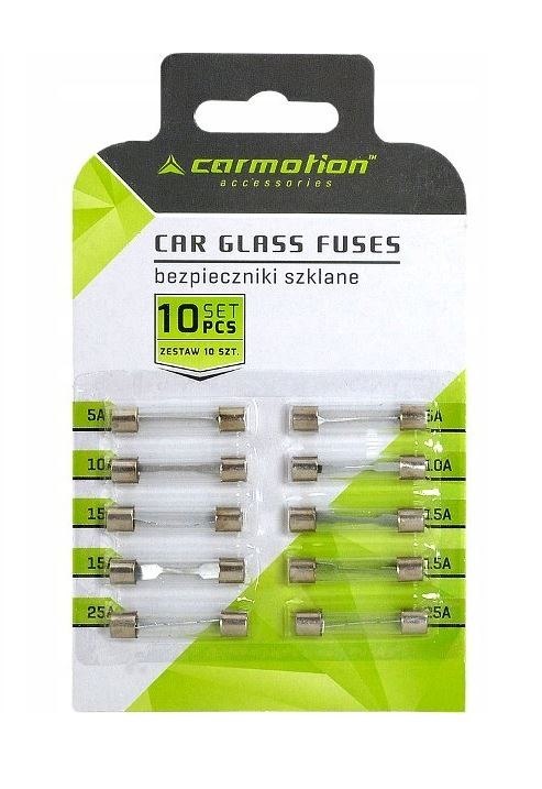 Bezpieczniki samochodowe szklane 30mm zestaw mix. Opakowanie 10 sztuk.