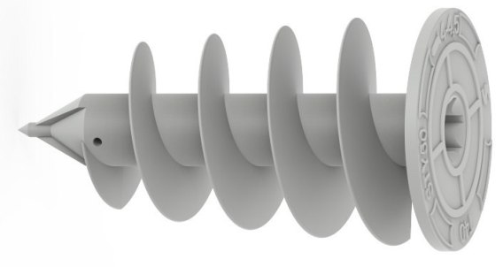 Kołek tworzywowy do mocowania w styropianie 25*50 mm nylon , dla średnicy wkręta 4,5 - 5 mm .