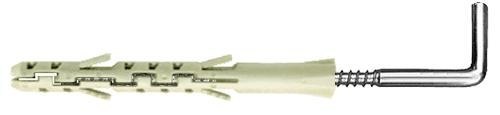 Dybel nylonowy z przedłużoną strefą rozporową do materiałów lekkich i otworowych , hak kątowy , ocynkowany ,