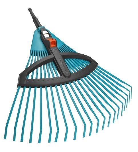 GARDENA combisystem - grabie wachlarzowe regulowane z tworzywa sztucznego pozwalają z łatwością grabić liście, skoszoną trawę, filc i inne odpady ogrodowe. Dzięki wymiennym narzędziom GARDENA combisystem zapewnia elastyczność w użytkowaniu.
