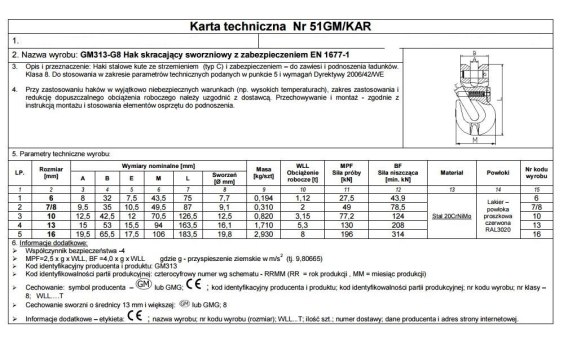 Hak skracający sworzniowy z zabezpieczeniem - EN 1677-1 .