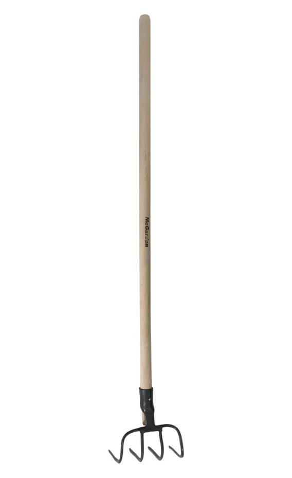 Widły hakowe gospodarcze 4 - zębowe do przerzucania kompostu, obornika, cienkie zęby, stal węglowa hartowana do 46 HRC, trzon buk