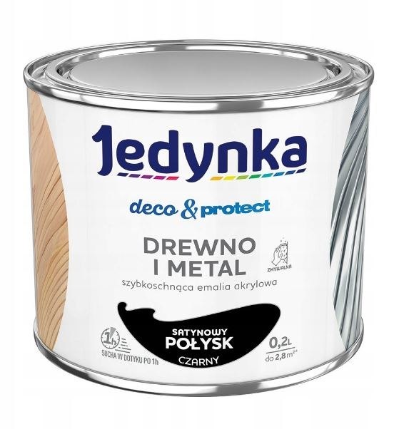 JEDYNKA DECO&PROTECT DREWNO I METAL SATYNA CZARNY 0,2L