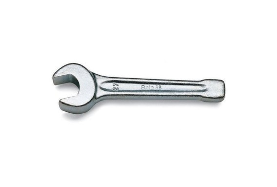 Beta Klucz płaski do podbijania jednostronny 60mm to masywny i wytrzymały klucz jednostronny, zakończony z jednej strony końcówką szczękową, a z drugiej wyprofilowanym kowadełkiem służącym do podbijania klucza. Klucz płaski jest najczęściej stosowanym kluczem, służącym do przykręcania i odkręcania klasycznych śrub w miejscach łatwo dostępnych, gdzie możliwe jest operowanie płasko kluczem dookoła śruby. Rozwartość klucza płaskiego wynosi 15° w odniesieniu do linii klucza. Specjalny rodzaj klucza do podbijania wykorzystywany jest w przemyśle ciężkim przy dużych obciażeniach, często do największym rodzajów śrub i nakrętek. Klucz firmy Beta został wykonany zgodnie z normą DIN 133.