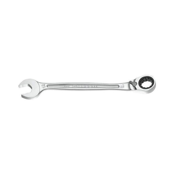 Klucz oczkowo-płaski z grzechotką Ultra-Grip: pierścień zaciskowy na uchu + nacięcie zapobiegające obracaniu się widelca