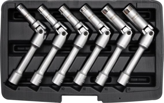 Klucze wykonane ze stali chromowo-wanadowej o symbolu CrV 50BV30. Specjalna konstrukcja klucza z przegubem i oringiem zabezpieczającym pozwala na łatwy demontaż świec żarowych, nawet w trudno dostępnych miejscach. Klucze współpracują z pokrętłem 3/8".
