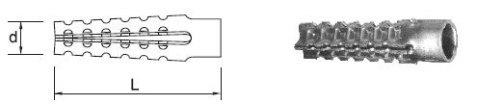 Kotwa metalowa o budowie wewnętrznej przystosowanej do elementów gwintowanych , do stosowania w gazobetonie i innych miękkich materiałach .