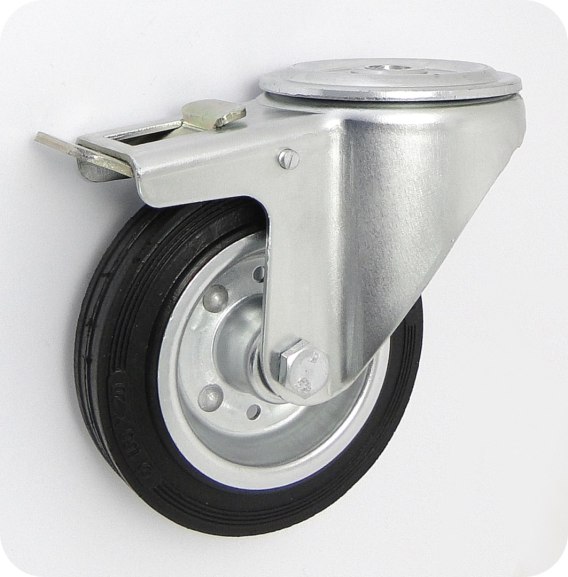 KOŁO METAL-GUMA 100MM OBUDOWA Z OTWOREM + HAMULEC 17H