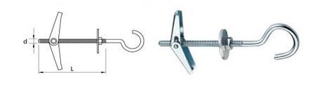 Kotwy rozporowe sprężyste metalowe, do płyt gipsowych z hakiem sufitowym .