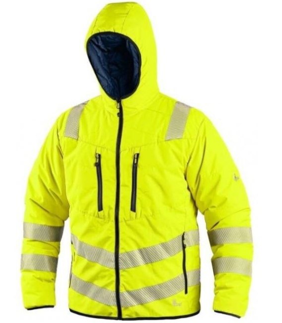 Męska obustronna kurtka ostrzegawcza ocieplana. Kaptur nieodpinany, mankiet rękawu i dolny brzeg w gumkę.Zewnętrzna część: kieszenie na piersi na zamek, boczne kieszenie na zamek i segmentowe paski odblaskowe. Wewnętrzna część: kieszeń na piersi na zamek,boczne kieszenie na zamek, kontrastujące żółte/pomarańczowe i odblaskowe elementy. Zalecane zastosowanie: budownictwo, prace drogowe, kierowcy,transport lotniczy i morski, logistyka, kierowcy ciężarówek, policja.