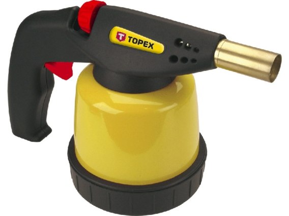 Palnik gazowy TOPEX 44E141 posiada piazoelektryczny zapalnik, dzięki któremu jej użytkowanie jest łatwiejsze, a użytkownik nie musi się martwić o poparzenie przy odpalaniu. Sprzęt wyposażony jest w pokrętło do regulacji wielkości płomienia oraz metalową obudowę. Lampa lutownicza sprawdzi się w takich pracach jak: nagrzewanie, odmrażanie rur, wyżarzanie czy luzowanie śrub, lutowanie cyną, aluminium lub srebrem, kształtowanie gięcie rur, płyt czy rozpalanie grilla.