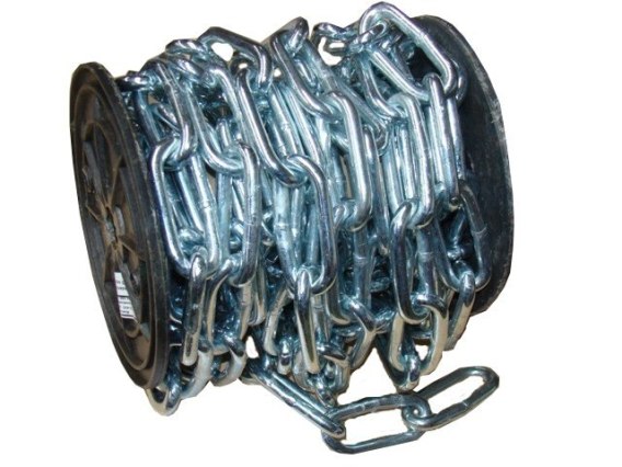Łańcuch gospodarczy długoogniwowy bocznie zgrzewany , ocynkowany elektrolitycznie ,"D-2" DIN 5685 C - na plastikowej rolce .