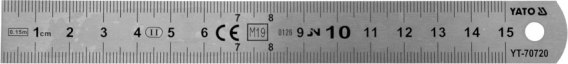 Liniał elastyczny, klasa dokładności II . Wykonany ze stali nierdzewnej. Na obu krawędziach naniesiona trwale podziałka milimetrowa . Szerokość 19 mm długość całkowita 176 mm, grubość 0,9 mm na rewersie tabele konwersji wartości gwintów. Do precyzyjnych pomiarów i trasowania w pracach ślusarskich , mechanicznych , dekoratorskich itp.