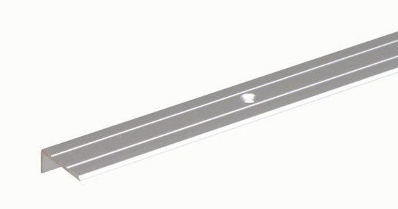 Profil ochronny do krawędzi schodów 1000X25X20X1.5 mm wykonany z aluminium w kolorze srebrnym.