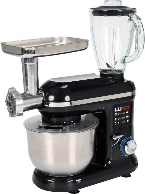 Uniwersalny mikser planetarny ze szklanym blenderem i maszynką do mięsa. Nieoceniony pomocnik w każdej kuchni, który ugniata, ubija, miesza, blenduje i mieli.
