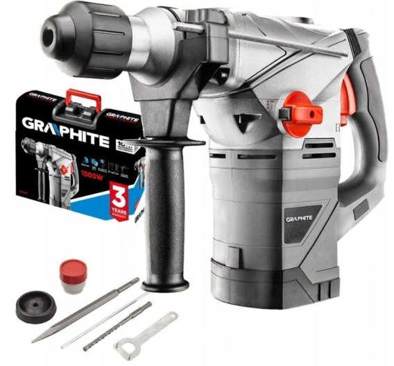 Specjalistyczny 3-funkcyjny młot udarowy SDS+ GRAPHITE o mocy 900W, niezastąpiony podczas prac instalacyjnych i rozbiórkowych.