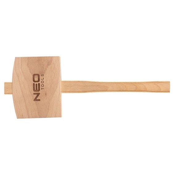 Młotek drewniany NEO (nr ref. 25-078) przeznaczony jest przede wszystkim do podbijania innych narzędzi, takich jak dłuto, przecinak. Obuch wykonany z twardego drewna, prostokątny, rękojeść dobrze dopasowuje się do dłoni. Drewno zabezpieczone przed pochłanianiem wilgoci, dzięki czemu narzędzie jest lekkie, co zapewnia komfort pracy. Marka NEO spełnia oczekiwania profesjonalistów.