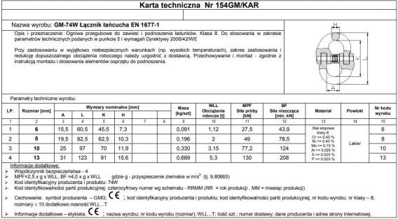 OGNIWO PRZEGUBOWE GM74W-G8 10MM WLL 3.15T