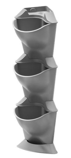 Zestaw zawiera 3 doniczki narożne, 3 pokrywki, 1 płytę podstawy oraz 6 łączników.