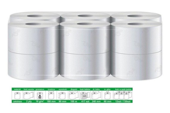 PAPIER/RĘCZNIK 100% CELULOZA, 100M/9CM OP. 12SZT
