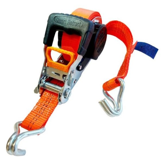 Pas transportowy z automatycznym zwijaniem, zapobiegajacym plataniu sie pasa i ułatwiajacym mocowanie ładunku. Aby zamocowac ładunek nalezy wyciagnac pas, zaczepic haki i naprezyc pas napinaczem.