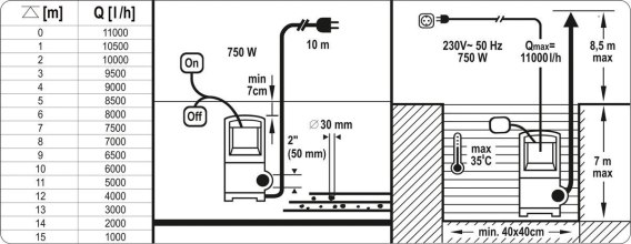 automatyczny przełącznik pływakowy na bocznej prowadnicy reaguje na zmieniający się poziom wody już od 5 mm - pompa włącza się samoczynnie, zapewniając wypompowanie całej wody, bez konieczności nadzorowania jej pracy