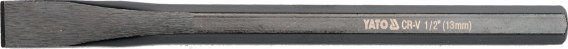 Część robocza spłaszczona z zaostrzoną, frezowaną krawędzią , przecinak pozostawia ślad na materiale po uderzeniu młotkiem, długość całkowita 152 mm, szerokość 12,5 mm, uchwyt o profilu sześciokątnym 9,4 mm.