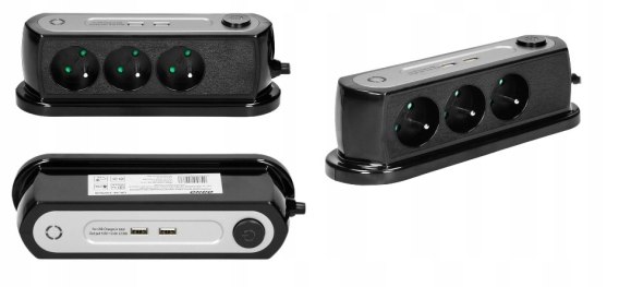 Nabiurkowa listwa zasilająca to doskonałe i praktyczne urządzenie, które umożliwia podłączenie sprzętu różnego typu, również tego ładowanego przez port USB. Posiada 3 gniazda prądowe z zabezpieczeniem przeciwprzepięciowym (typ 3) oraz 2 porty USB, które tak wkomponowano w obudowę urządzenia, by zajmowało ono mało miejsca na blacie biurka. Listwa dodatkowo wyposażona jest w wyłącznik główny oraz kabel zasilający o długości 1,4m.