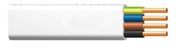 Przewód o żyłach miedzianych jednodrutowych (D) w izolacji polwinitowej (Y) i w powłoce polwinitowej (Y) płaski (p) z żyłą ochronną zielono-żółtą (żo).