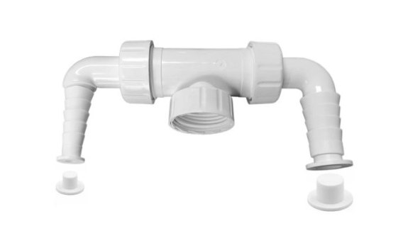 Przłącze podwójne umozliwia jednoczesne podłączenie odpływu dwóch różnych urządzeń: pralka/ zmywarka/ suszarka.
