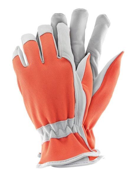 Rękawice ochronne wykonane z wysokiej jakości skóry koziej.skóra kozia licowa w jasnych kolorach,wierzch wykonany zfluorescencyjnej tkaniny w kolorze pomarańczowym,całodłonicowe - część chwytna wykonana z jednego kawałka skóry,dzięki czemu wykazują większą wytrzymałość i odporność na przetarcia,wysokiej jakości miękka skóra kozia zapewniadoskonały komfort pracy,marszczenie w nadgarstku sprawia, iż rękawica przylega do dłoni i lepiej chroni przed dostaniemsię do jej wnętrza wiatru czy piasku