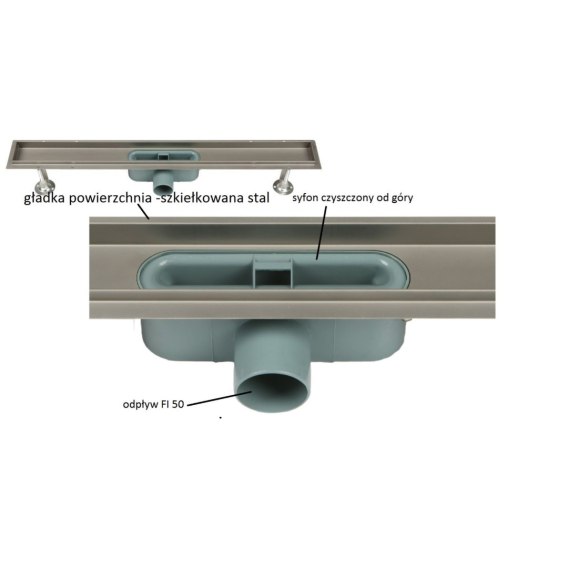 stal nierdzewna + dedykowany do odwodnień łazienkowych syfon z tworzywa sztucznego