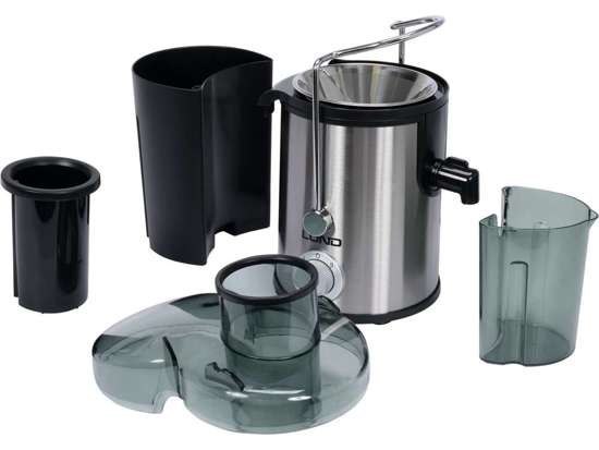 Wysokoobrotowa sokowirówka marki LUND z wydajnym silnikiem o mocy 600W oraz 2-poziomową regulacją prędkości do 13000 obrotów/minutę. Otwór wlotowy o szerokości 65 mm pozwala na wrzucanie dużych kawałków owoców i warzyw.