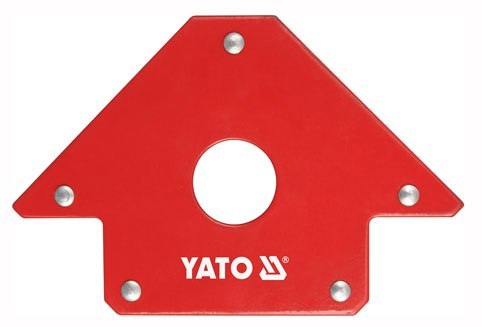 Kątownik magnetyczny wykonany z blachy stalowej oraz silnych magnesów ferrytowych. Umożliwia precyzyjne łączenie materiałów pod następującymi kątami: 45°, 90° i 135°. Udźwig magnesu ok. 22,5 kg. Posiada otwór służący do montażu elementów walcowych, np. rurek i prętów, o średnicy do 28 mm. Powierzchnia obudowy magnesu lakierowana proszkowo. Przeznaczony do czasowego łączenia metalowych elementów podczas spawania, nawiercania, lakierowania, czynności wymagających używania obu rąk. Stosowanie kątownika magnetycznego pozwala na swobodne operowanie obiema rękami i wstępne montowanie łączonych, metalowych elementów bez pomocy dodatkowej osoby.