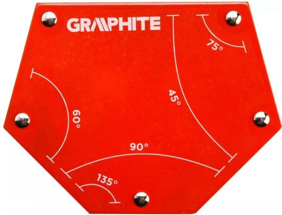 Spawalniczy kątownik magnetyczny GRAPHITE (nr ref. 56H905), umożliwia mocowanie spawanych elementów pod kątem 45?, 60?, 75?, 90? lub 135?. Silne magnesy ferrytowe przytrzymują spawane detale, przez co spawacz ma obydwie ręce wolne.