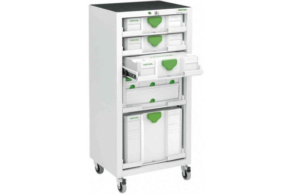 Mobilność dzięki ułożyskowanym kulkowo rolkom przegubowym (w szafce na Systainery Sys-Port 500/2 tylko jako wyposażenie dodatkowe)