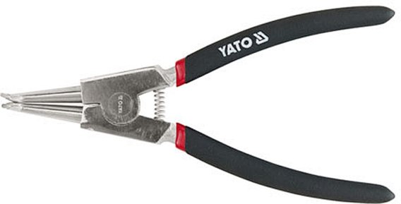 Szczypce segera służą do montażu i demontażu pierścieni zabezpieczających segera. Są 2 typy tych zabezpieczeń: wewnętrzne (rozprężne w środku tulei) i zewnętrzne (zaciskowe, na zewnątrz wałka). Produkt Yato jest dostosowany do pracy z pierścieniami zewnętrznymi. Posiada wygięte końcówki. Szczypce są wykonane z trwałej i wytrzymalej stali chromowo wanadowej, posiadaja rączki z dwukolorowej gumy.