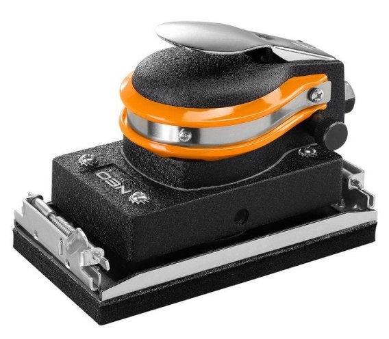 Szlifierka oscylacyjna pneumatyczna prostokątna 14-018 NEO umożliwia skuteczne i wydajne szlifowanie dużych powierzchni. Dzięki zasilaniu sprężonym powietrzem sprawdzi się przy długotrwałej pracy. Jest wyposażona w wygodny uchwyt poprawiający komfort pracy przez ograniczenie wibracji, a także metalowe zaciski umożliwiające stosowanie papieru ściernego ciętego z rolki. Narzędzie posiada też uniwersalne przyłącze powietrza 1". Wylot powietrza znajduje się z tyłu szlifierki. Cechy charakterystyczne: rozmiar stopy 89 x 165 mm maksymalne obroty 9 0000 obr./min. średnie zużycie powietrza 128 l/min. ciśnienie robocze 6,3 bar wylot powietrza z tyłu przyłącze powietrza 1/4" długość szlifierki: 165 mm.
