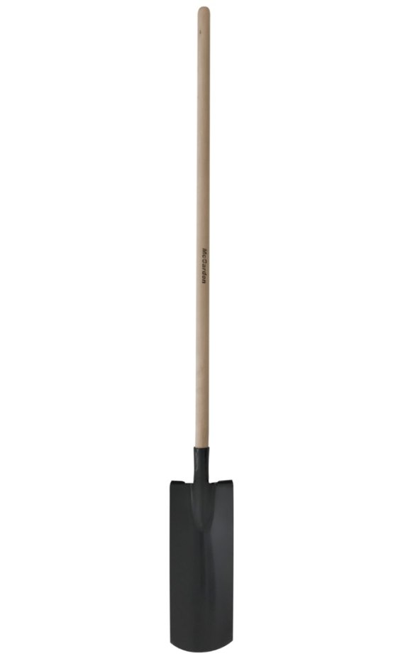 Szpadel (sztychówka) szkółkarski - drenarski do sadzenia drzew i krzewów, do kopania rowów odpływowych, osadzania rur drenażowych i słupków ogrodzenia, stal gatunkowa do 43 HRC, trzon drewniany (bukowy) typ P-130