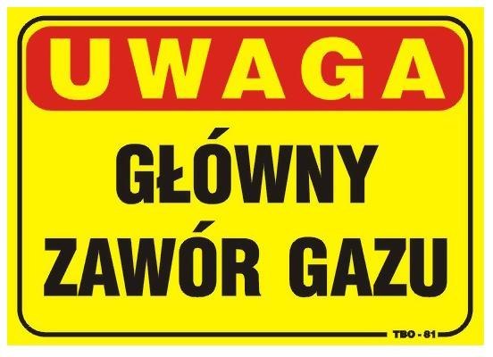 • TABLICA 35*25CM UWAGA! GŁÓWNY ZAWÓR GAZU