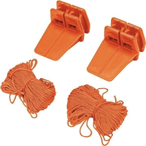 Uchwyty do mocowania linki murarskiej .Pozwalają na szybkie rozciągnięcie linki podczas murowania . Mocowanie uchwytów nie wymaga wbijania gwoździ co jest istotne np. przy elewacjach klinkierowych. Zestaw zawiera 18 m. profesjonalnej poliamidowej linki w jaskrawym , pomarańczowym kolorze. Stosując uchwyty unikamy niszczenia ściany ,/ klinkieru, kamienia , porotermu / spowodowanego wbijaniem gwoździ lub haków.