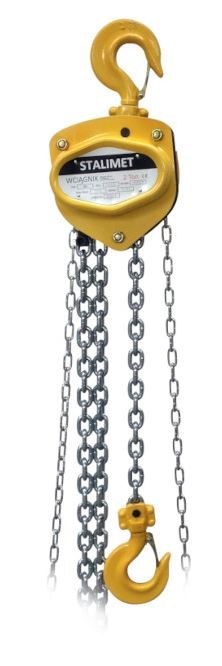Posiada niewielką masę własną oraz ocynkowany łańcuch nośny klasy 8 ze stali stopowej .