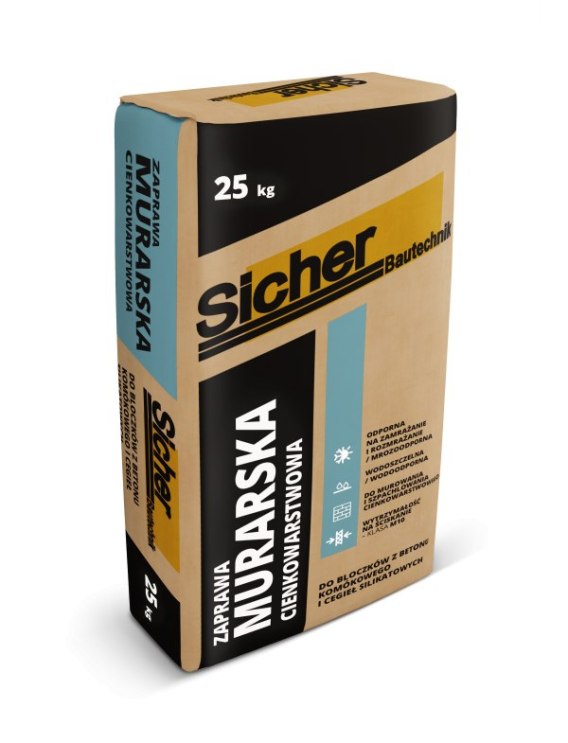 Cienkowarstwowa Zaprawa Murarska jest suchą mieszanką cementu, kruszyw oraz odpowiednio dobranych dodatków poprawiających parametry robocze. Służy do wznoszenia murów wewnętrznych i zewnętrznych z betonu komórkowego oraz elementów silikatowych. Nadaje się również do wyrównywania powierzchni oraz szpachlowania - do grubości 5 mm. Spoina wykonana z Cienkowarstwowej Zaprawy Murarskiej nie powinna przekraczać 3 mm. Cienka warstwa zaprawy eliminuje powstawanie mostków termicznych w spoinie. Odznacza się dobrą przyczepnością do podłoża i wysoką wytrzymałością. Zaprawa uzyskuje pełną wytrzymałość po 3 dniach.