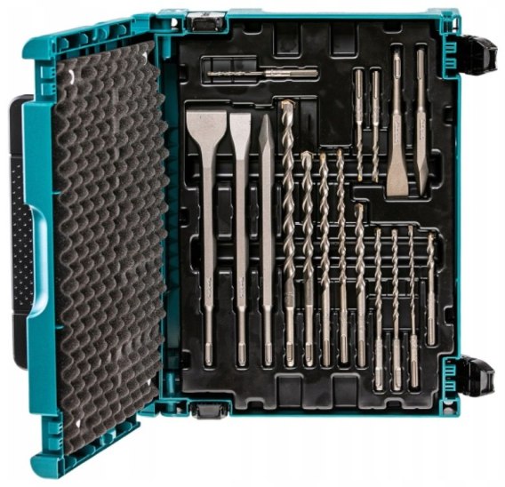 Zestaw zawiera 17 sztuk osprzętu: wiertła z ostrzem z węglika spiekanego (HM/CT), dłuta oraz szpice.