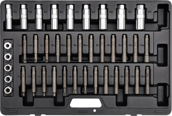 Profesjonalny 39-elementowy zestaw kluczy służący do mocowania amortyzatorów.