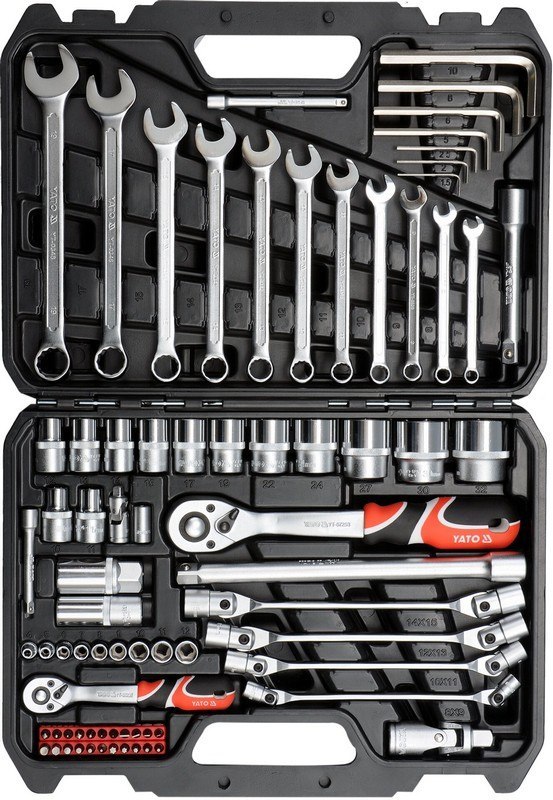 Zestaw narzędziowy Yato składa się z 77 elementów umieszczonych w wygodnej walizce z tworzywa sztucznego. Narzędzia zostały precyzyjnie wykonane z materiałów zapewniających ich niezawodność.